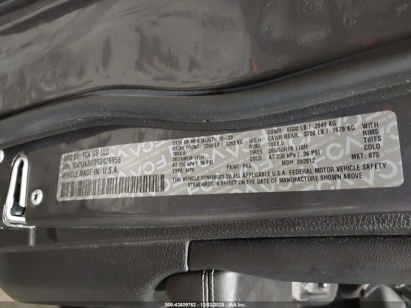 2024 JEEP GRAND CHEROKEE 2024 року Бензин, 3.6, Полный привод, vin - 1C4RJKBG0R8926956 из США