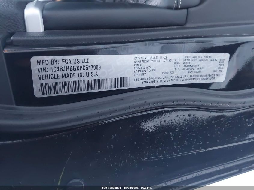2023 JEEP GRAND CHEROKEE 2023 року Бензин, 3.6, Полный привод, vin - 1C4RJHBGXPC517909 из США