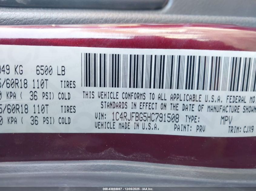 Цвет БургундияЦилиндры 6Привод Полный приводVIN 1C4RJFBG5HC791508Состояние Заводится и едет (проверено)Повреждения Передняя или задняя AutoRIA