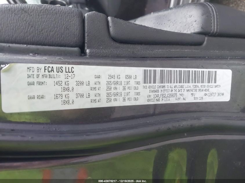 2018 JEEP GRAND CHEROKEE 2018 року Бензин, 3.6, Полный привод, vin - 1C4RJFBG2JC258375 из США