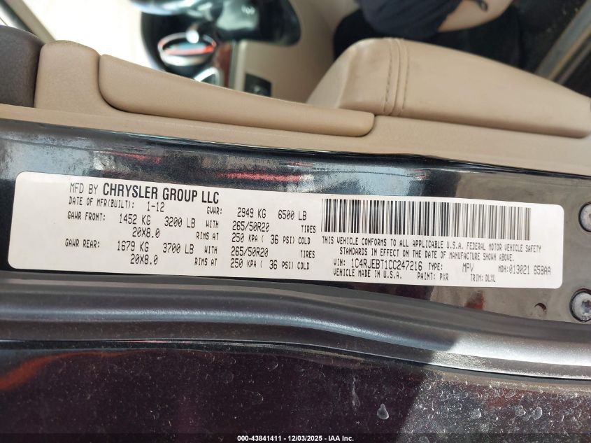 2012 JEEP GRAND CHEROKEE 2012 року Бензин, 5.7, , vin - 1C4RJEBT1CC247216 из США