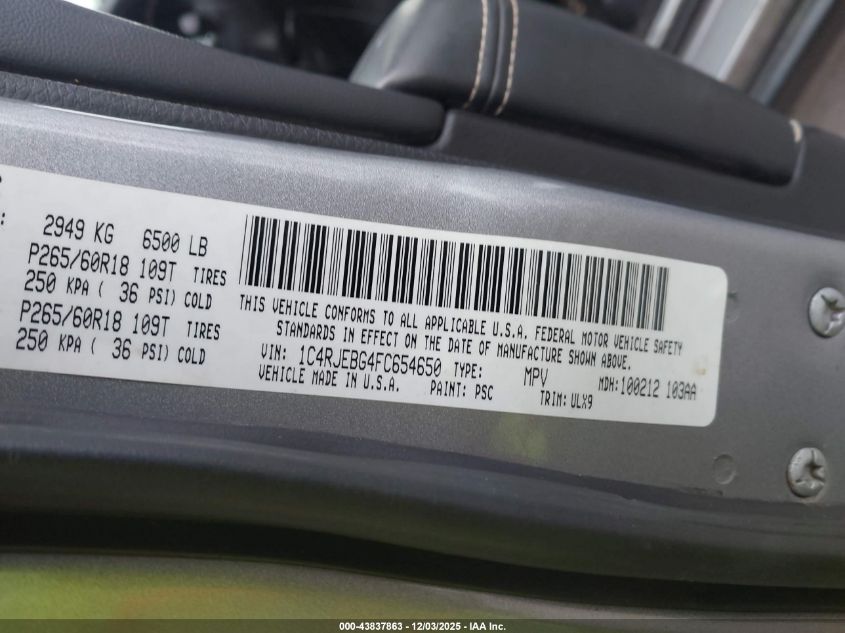 2015 JEEP GRAND CHEROKEE 2015 року Бензин, 3.6, , vin - 1C4RJEBG4FC654650 из США