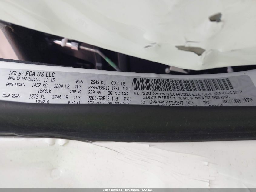 Цвет БелыйЦилиндры 6Привод Полный приводVIN 1C4RJFBG7FC216047Состояние Заводится и едет (проверено)Повреждения Левая сторона AutoRIA