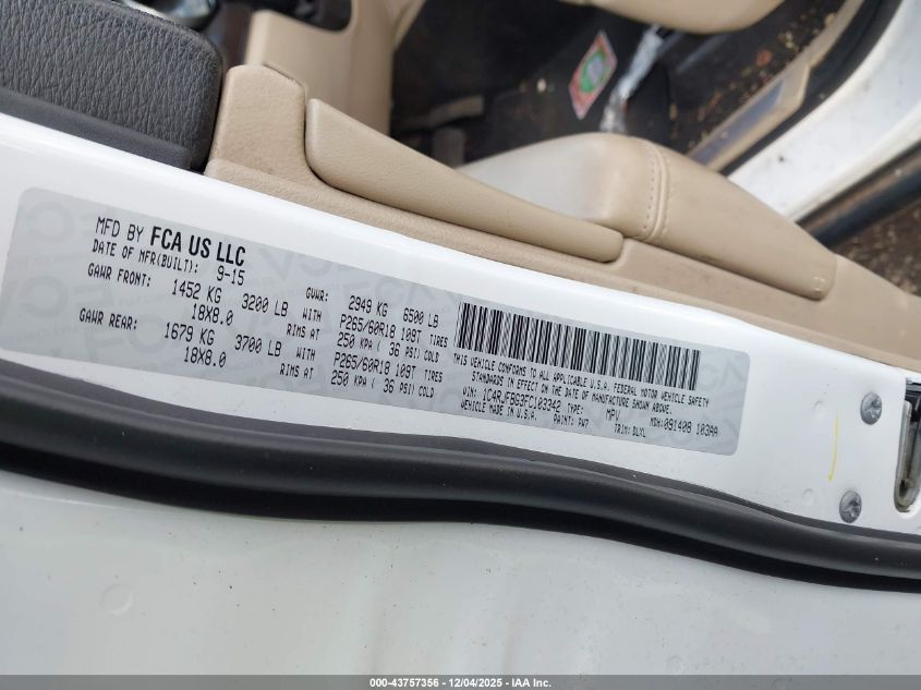 2015 JEEP GRAND CHEROKEE 2015 року Бензин, 3.6, Полный привод, vin - 1C4RJFBG3FC103342 из США
