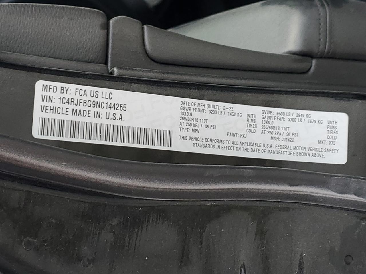 2022 JEEP GRAND CHEROKEE 2022 року Бензин, 3.6, 4x4 с задним приводом, vin - 1C4RJFBG9NC144265 из США