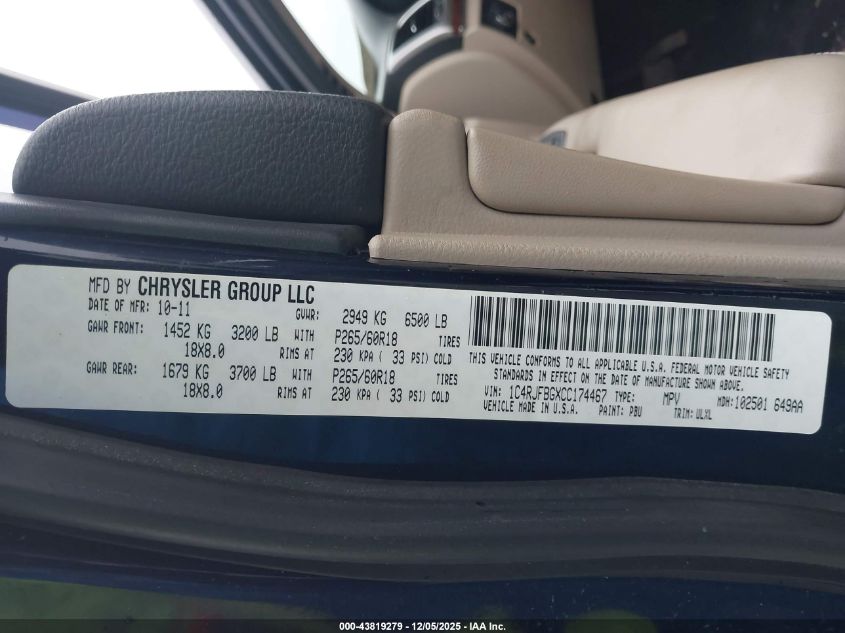 2012 JEEP GRAND CHEROKEE 2012 року Бензин, 3.6, Полный привод, vin - 1C4RJFBGXCC174467 из США