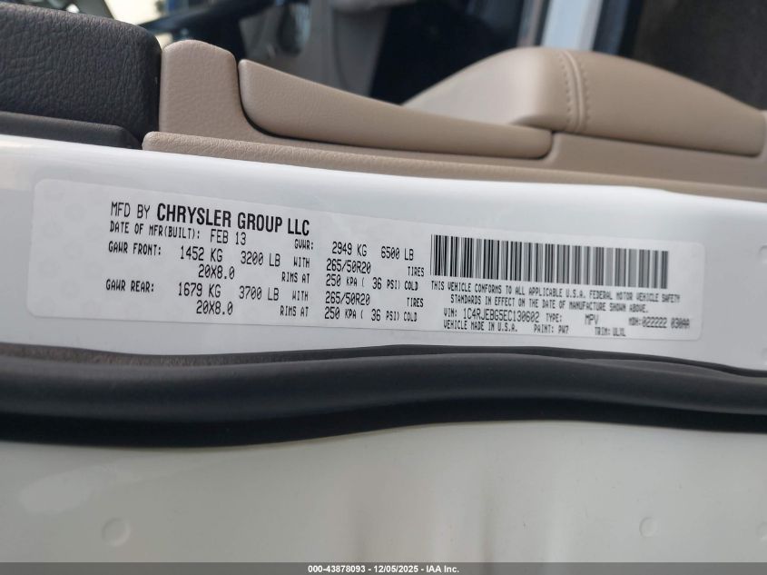 Цвет БелыйЦилиндры 6VIN 1C4RJEBG5EC130602Состояние Заводится и едет (проверено)Повреждения Левая сторона AutoRIA