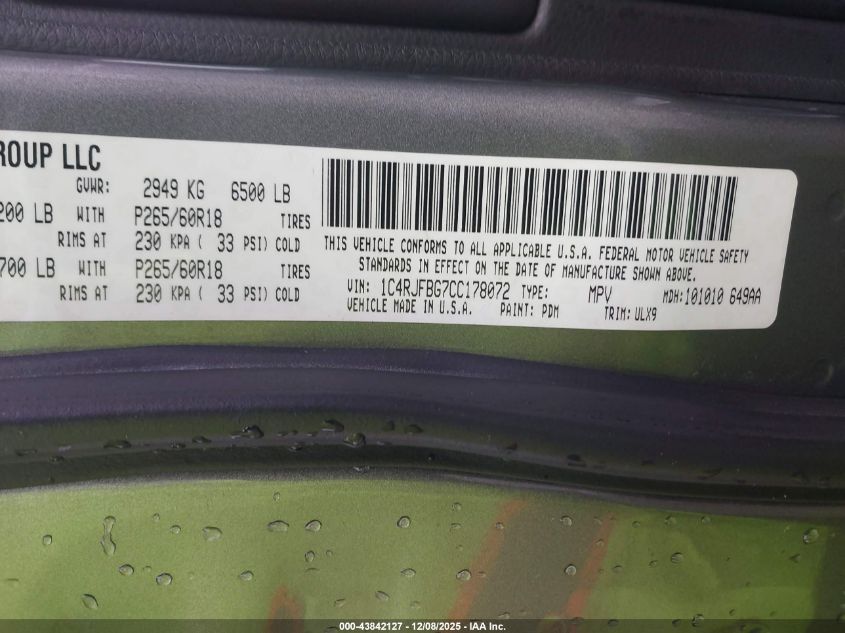 Цвет СерыйЦилиндры 6Привод Полный приводVIN 1C4RJFBG7CC178072Состояние СтационарноПовреждения Передняя или задняя AutoRIA