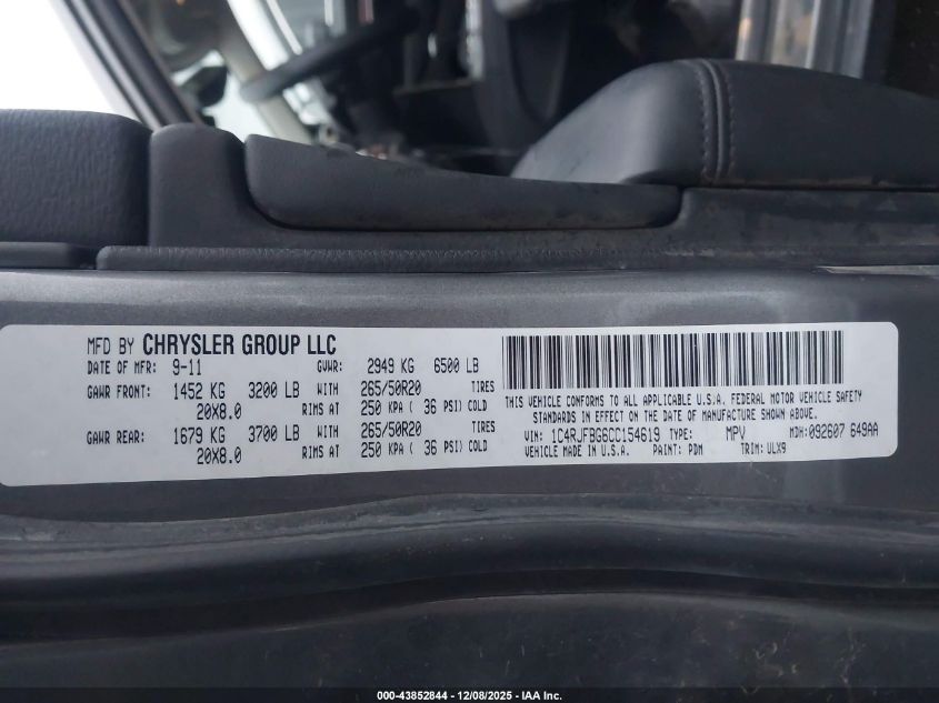 2012 JEEP GRAND CHEROKEE 2012 року Бензин, 3.6, Полный привод, vin - 1C4RJFBG6CC154619 из США