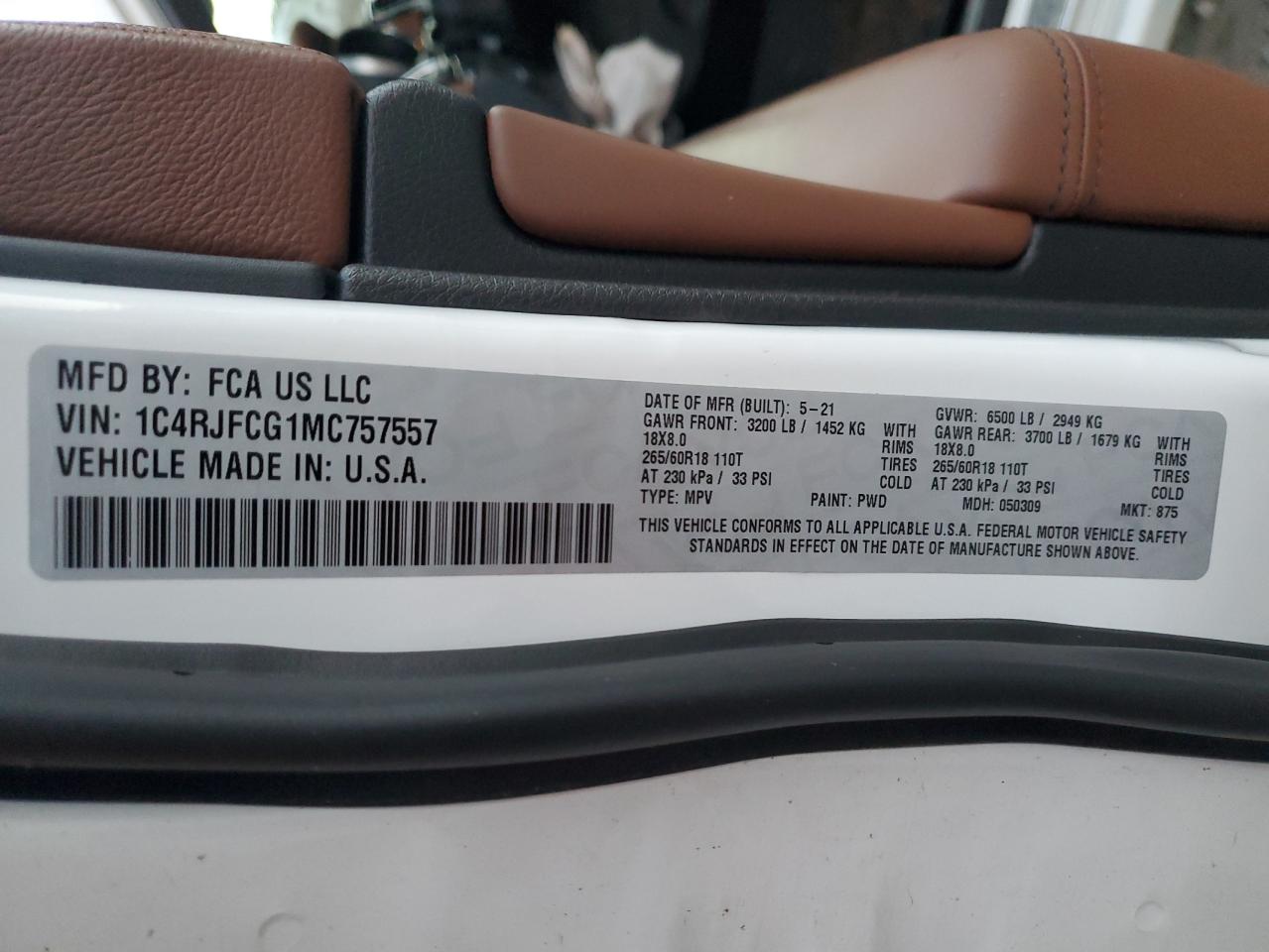 Цвет БелыйЦилиндры 6Привод 4x4 с задним приводомVIN 1C4RJFCG1MC757557Состояние НеизвестноПовреждения Передняя или задняя AutoRIA