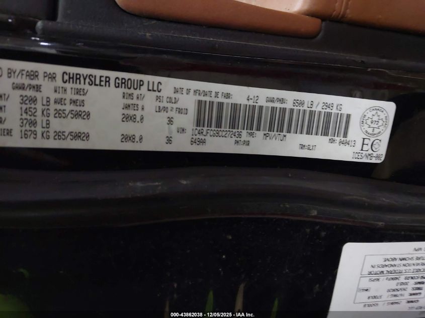 2012 JEEP GRAND CHEROKEE 2012 року Бензин, 3.6, Полный привод, vin - 1C4RJFCG9CC272436 из США
