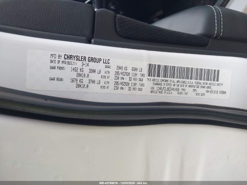 2014 JEEP GRAND CHEROKEE 2014 року Бензин, 6.4, Полный привод, vin - 1C4RJFDJ9EC441450 из США