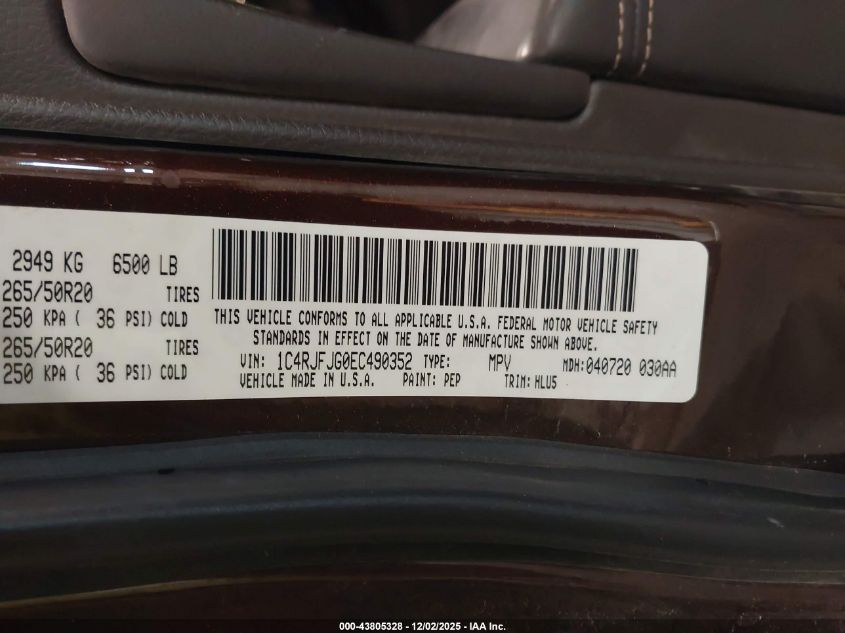 2014 JEEP GRAND CHEROKEE OVERLAND