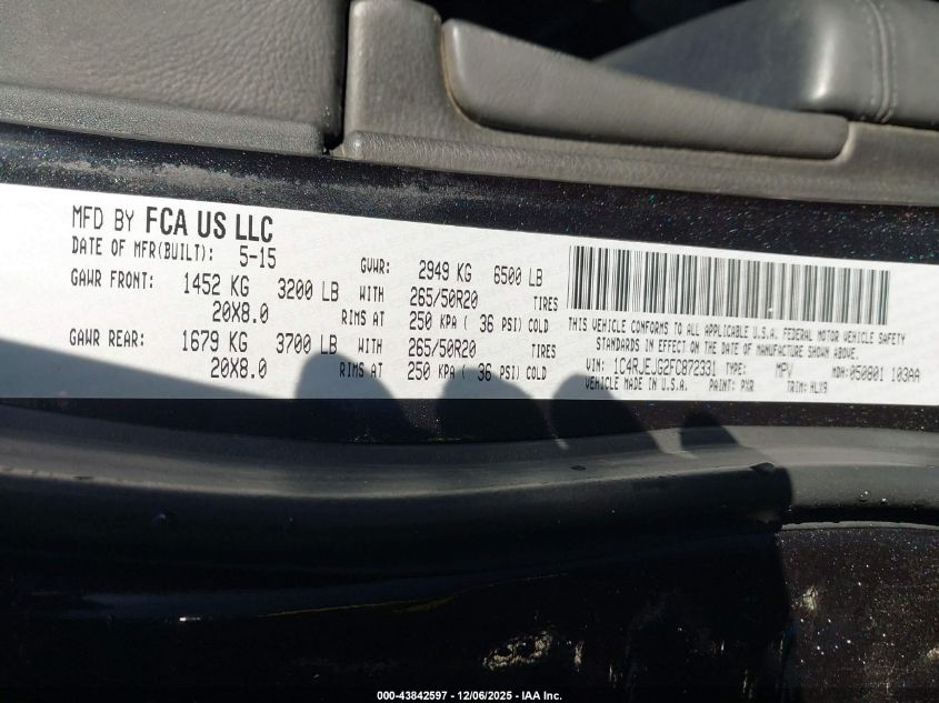 2015 JEEP GRAND CHEROKEE 2015 року Бензин, 3.6, , vin - 1C4RJEJG2FC872331 из США