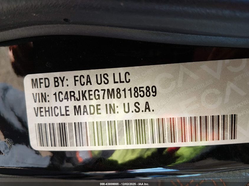 2021 JEEP GRAND CHEROKEE 2021 року Бензин, 3.6, Полный привод, vin - 1C4RJKEG7M8118589 из США