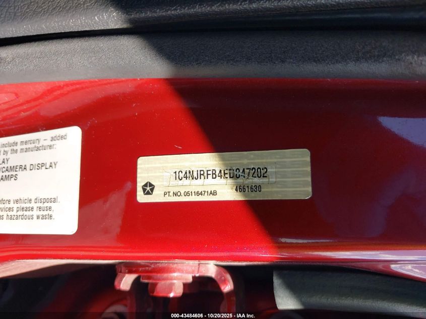 Цвет КрасныйЦилиндры 4Привод Полный приводVIN 1C4NJRFB4ED847202Состояние Заводится и едет (проверено)Повреждения Передняя или задняяДата аукциона 2025-12-09 AutoRIA