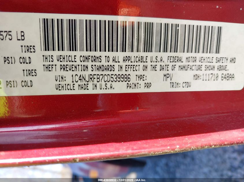Цвет КрасныйЦилиндры 4Привод Полный приводVIN 1C4NJRFB7CD539986Состояние Заводится и едет (проверено)Повреждения Обычный износ AutoRIA