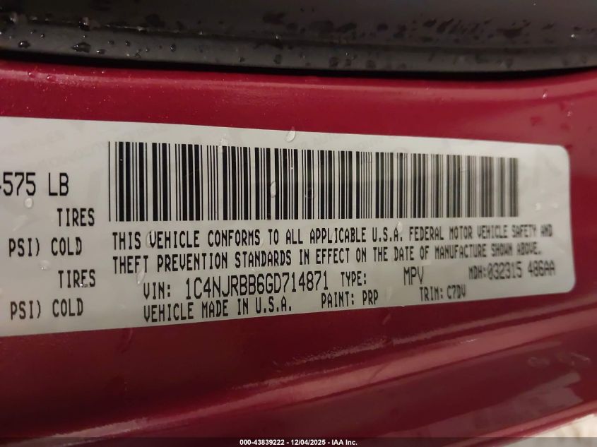 2016 JEEP PATRIOT 2016 року Бензин, 2.4, Полный привод, vin - 1C4NJRBB6GD714871 из США