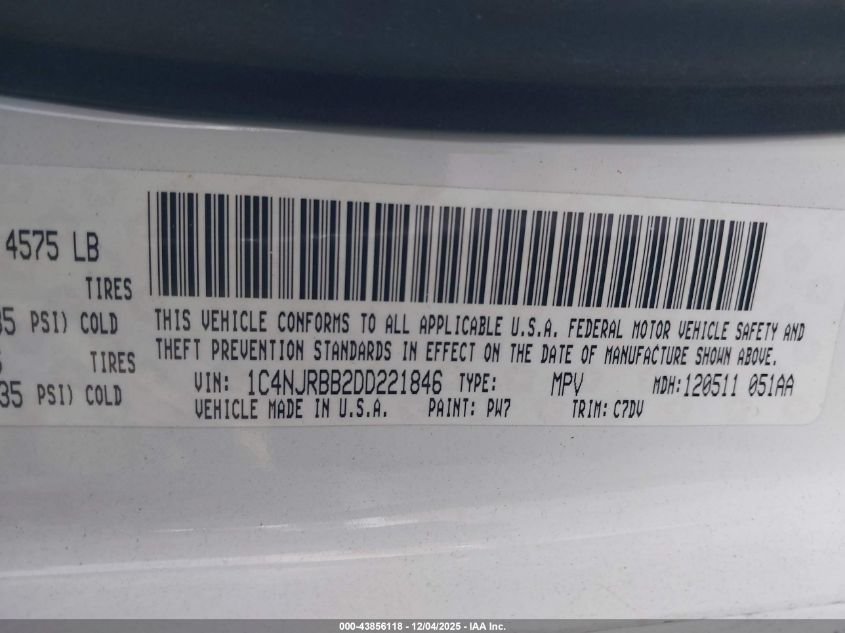 Цвет БелыйЦилиндры 4Привод Полный приводVIN 1C4NJRBB2DD221846Состояние СтационарноПовреждения Задняя AutoRIA