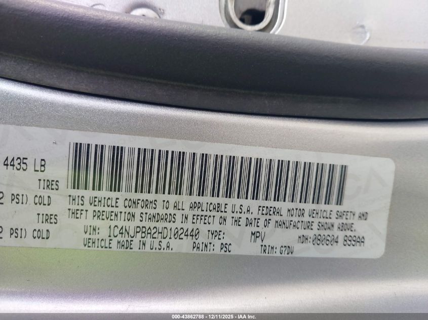 Цвет Цилиндры 4Привод Передний приводVIN 1C4NJPBA2HD102440Состояние НеизвестноПовреждения Правая сторона