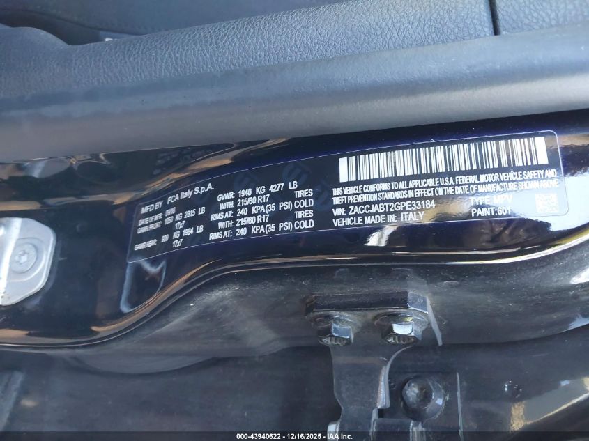 2016 JEEP RENEGADE 2016 року Бензин, 2.4, Передний привод, vin - ZACCJABT2GPE33184 из США