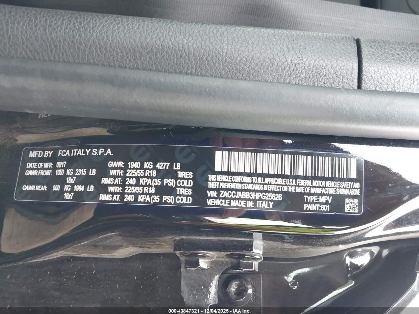 Цвет ЧерныйЦилиндры 4Привод Передний приводVIN ZACCJABB3HPG25626Состояние СтационарноПовреждения Задняя AutoRIA