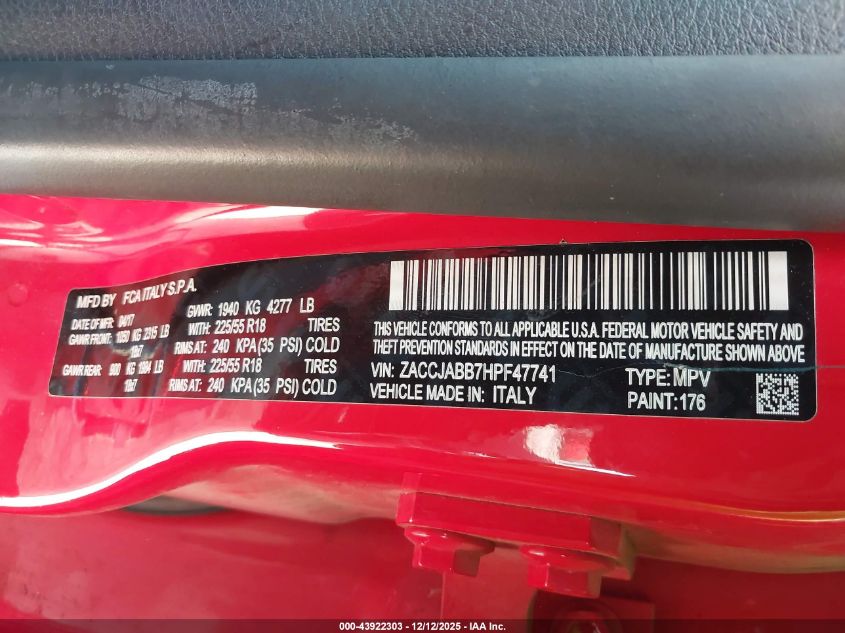 2017 JEEP RENEGADE 2017 року Бензин, 2.4, Передний привод, vin - ZACCJABB7HPF47741 из США