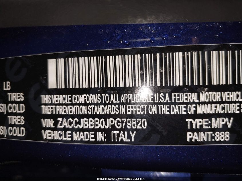 Цвет СинийЦилиндры 4Привод Полный приводVIN ZACCJBBB0JPG79820Состояние СтационарноПовреждения Передняя или задняя AutoRIA
