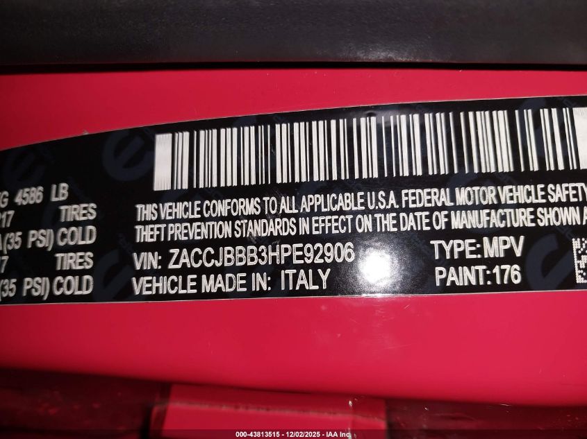 Цвет КрасныйЦилиндры 4Привод Полный приводVIN ZACCJBBB3HPE92906Состояние Заводится и едет (проверено)Повреждения Передняя или задняя AutoRIA
