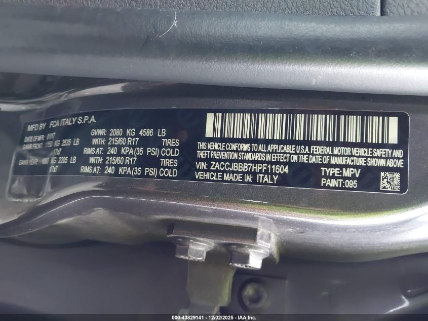 Цвет ЧерныйЦилиндры 4Привод Полный приводVIN ZACCJBBB7HPF11604Состояние СтационарноПовреждения Передняя правая AutoRIA