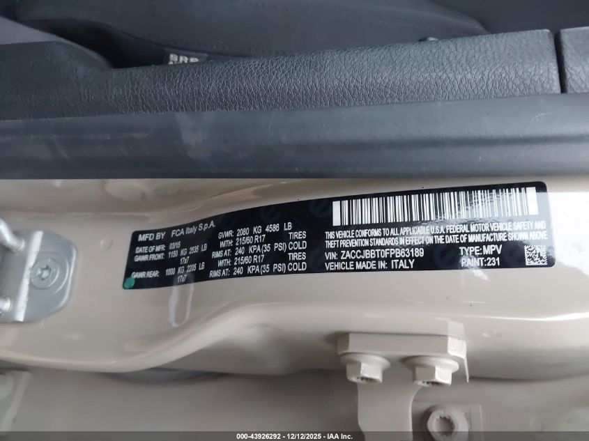 2015 JEEP RENEGADE 2015 року Бензин, 2.4, Полный привод, vin - ZACCJBBT0FPB63189 из США