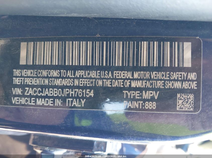 Цвет СинийЦилиндры 4Привод Передний приводVIN ZACCJABB0JPH76154Состояние СтационарноПовреждения Левая сторона AutoRIA