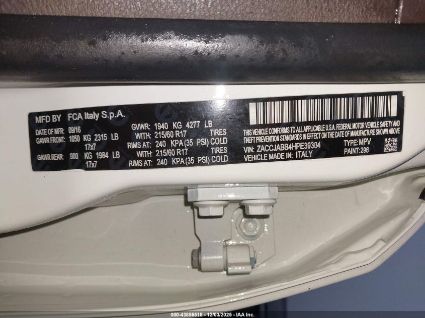 2017 JEEP RENEGADE 2017 року Бензин, 2.4, Передний привод, vin - ZACCJABB4HPE39304 из США