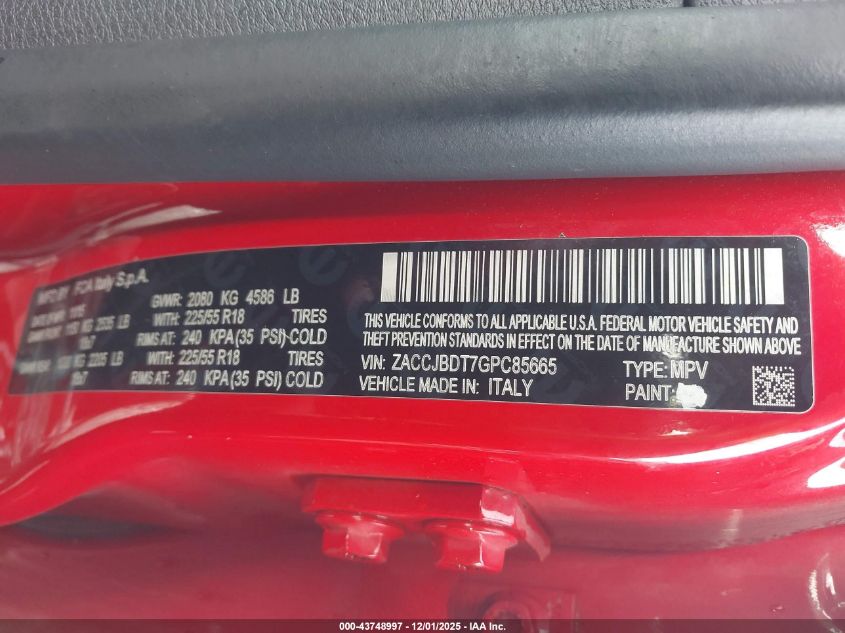 Цвет КрасныйЦилиндры 4Привод Полный приводVIN ZACCJBDT7GPC85665Состояние Заводится и едет (проверено)Повреждения Передняя левая AutoRIA
