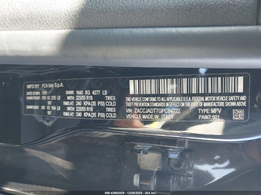 Цвет ЧерныйЦилиндры 4Привод Передний приводVIN ZACCJADT7GPC84722Состояние Заводится и едет (проверено)Повреждения Задняя правая AutoRIA