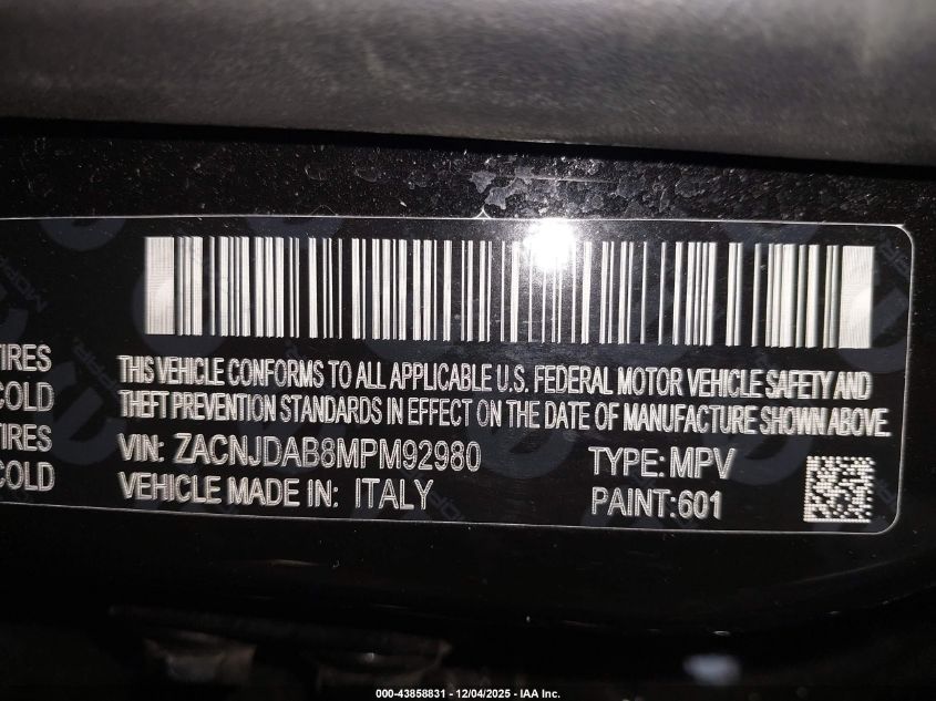 Цвет ЧерныйЦилиндры 4Привод Полный приводVIN ZACNJDAB8MPM92980Состояние СтационарноПовреждения Правая сторона AutoRIA