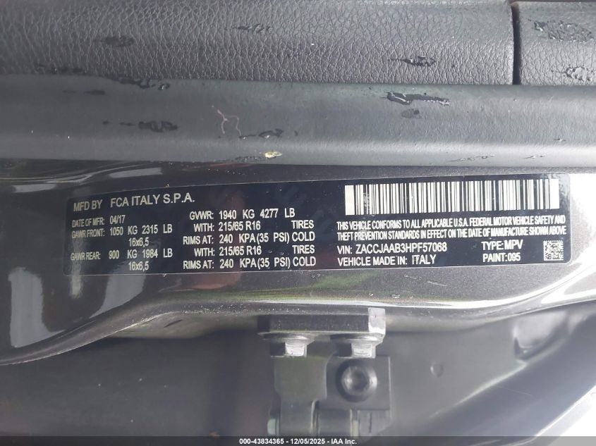 2017 JEEP RENEGADE 2017 року Бензин, 2.4, Передний привод, vin - ZACCJAAB3HPF57068 из США