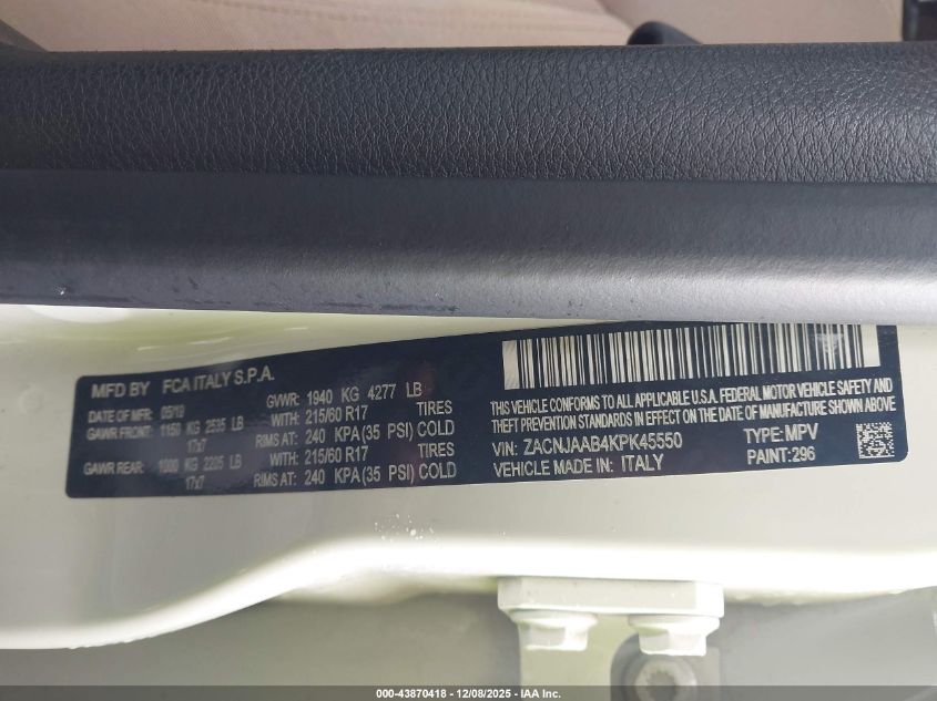 Цвет БелыйЦилиндры 4Привод Передний приводVIN ZACNJAAB4KPK45550Состояние Заводится и едет (проверено)Повреждения Передняя правая AutoRIA