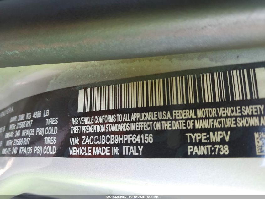 2017 JEEP RENEGADE 2017 року Бензин, 2.4, Полный привод, vin - ZACCJBCB9HPF64156 из США