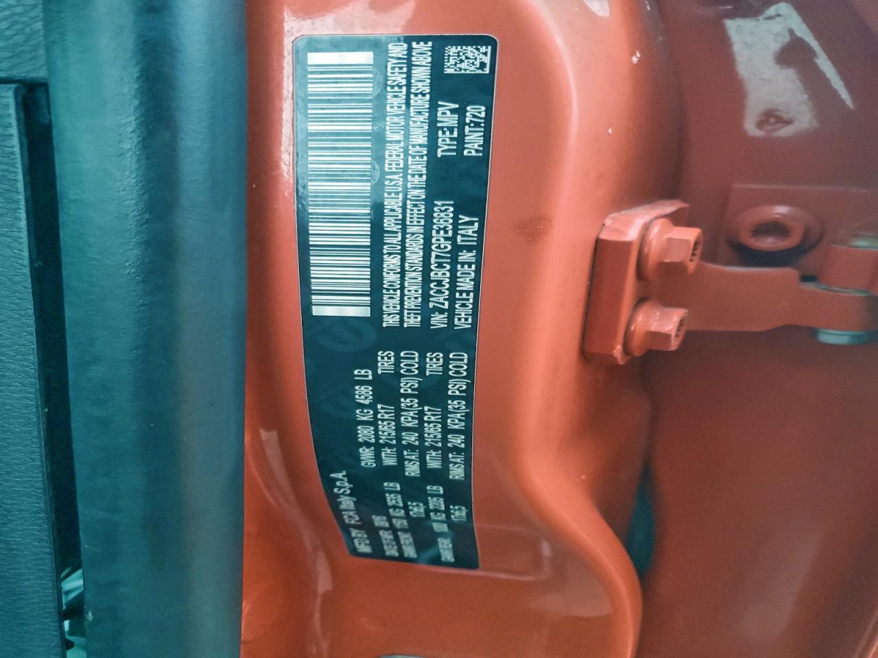 Цвет АпельсиновыйЦилиндры 4Привод 4x4 с передним приводомVIN ZACCJBCT7GPE36831Состояние НеизвестноПовреждения Передняя или задняя AutoRIA