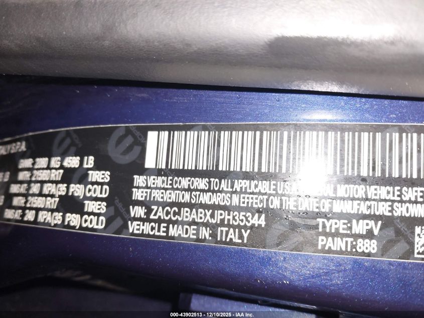 Цвет СинийЦилиндры 4Привод Полный приводVIN ZACCJBABXJPH35344Состояние Заводится и едет (проверено)Повреждения Передняя левая AutoRIA