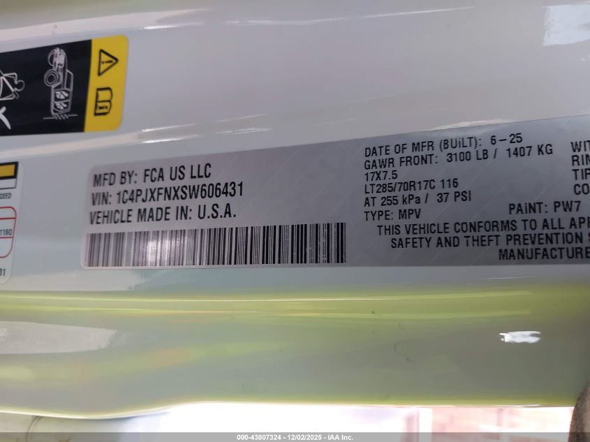 2025 JEEP WRANGLER 2025 року Бензин, 2.0, Полный привод, vin - 1C4PJXFNXSW606431 из США