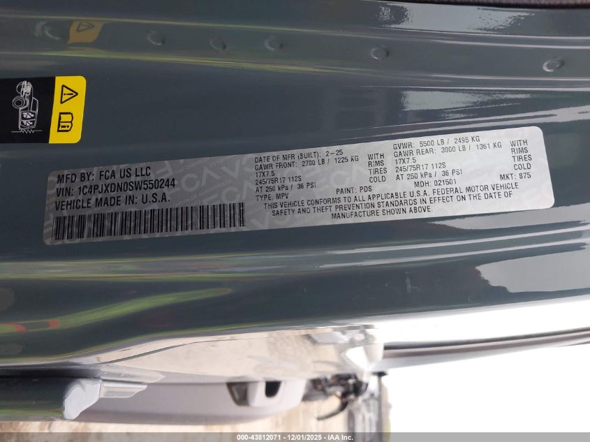 2025 JEEP WRANGLER 2025 року Бензин, 2.0, Полный привод, vin - 1C4PJXDN0SW550244 из США