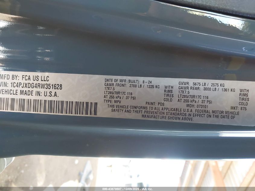 2024 JEEP WRANGLER 2024 року Бензин, 3.6, Полный привод, vin - 1C4PJXDG4RW351628 из США
