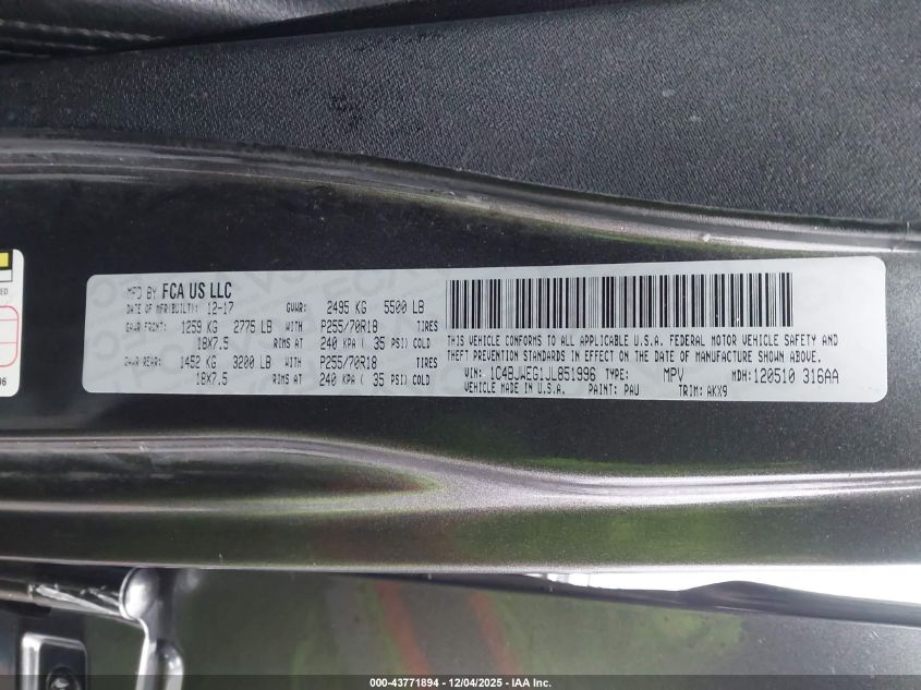 Цвет СерыйЦилиндры 6Привод Полный приводVIN 1C4BJWEG1JL851996Состояние Заводится и едет (проверено)Повреждения Опрокидывание AutoRIA