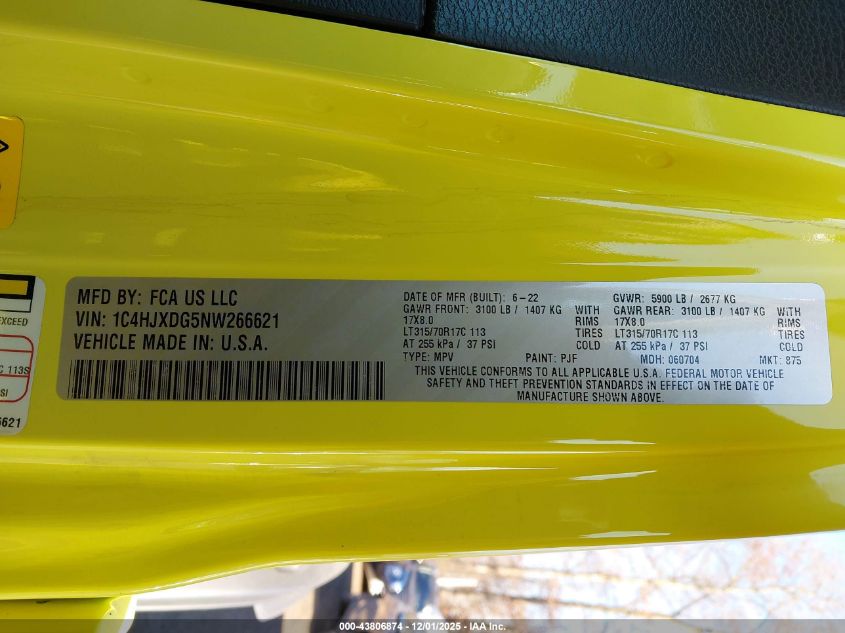 2022 JEEP WRANGLER 2022 року Бензин, 3.6, Полный привод, vin - 1C4HJXDG5NW266621 из США