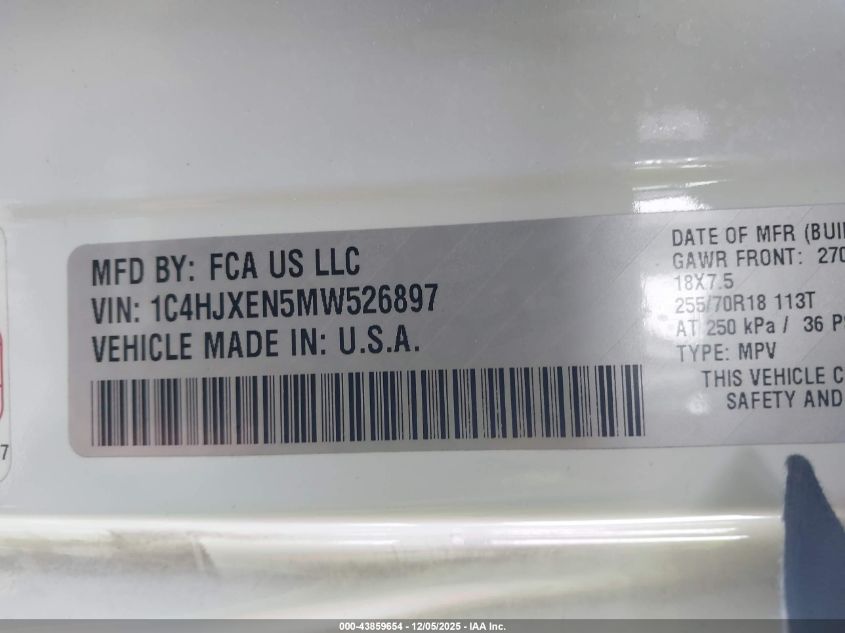 Цвет БелыйЦилиндры 4Привод Полный приводVIN 1C4HJXEN5MW526897Состояние Заводится и едет (проверено)Повреждения Передняя или задняя AutoRIA