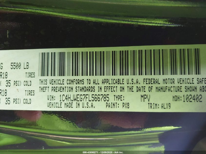 2015 JEEP WRANGLER 2015 року Бензин, 3.6, Полный привод, vin - 1C4HJWEG7FL566785 из США
