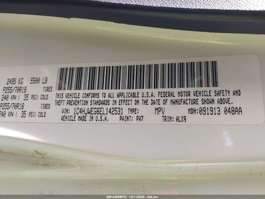 Цвет БелыйЦилиндры 6Привод Полный приводVIN 1C4HJWEG6EL142531Состояние НеизвестноПовреждения Передняя или задняя AutoRIA