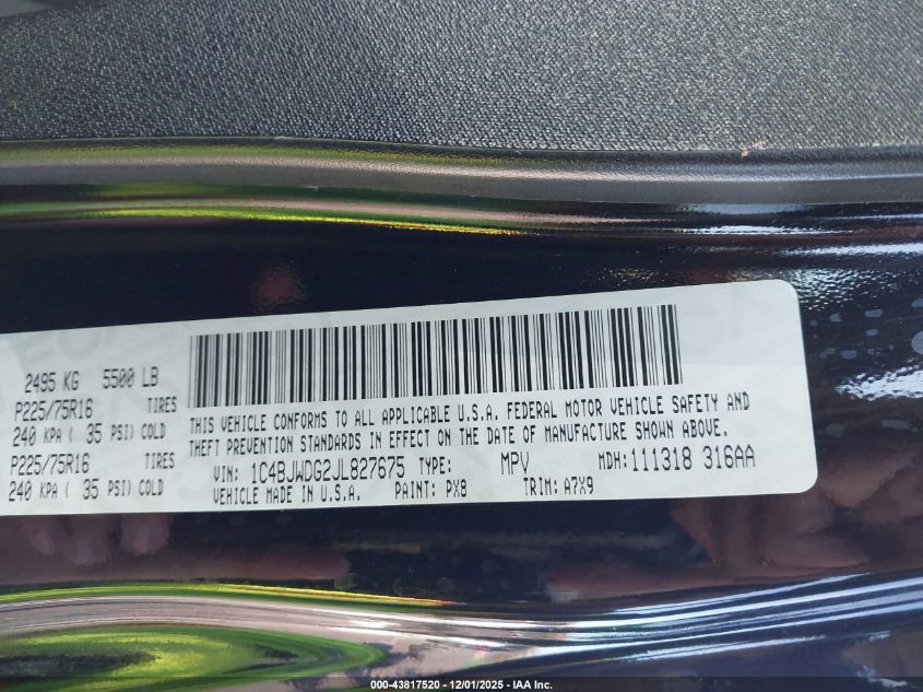 Цвет ЧерныйЦилиндры 6Привод Полный приводVIN 1C4BJWDG2JL827675Состояние СтационарноПовреждения Задняя правая AutoRIA